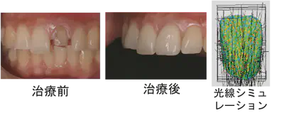 患者の口腔内の審美性に対する要求が高まっています。特に前歯部においては単に機能を回復するだけでなく、天然歯に近似した色調や光の透過性を有する修復治療が求められています。そこで、各種歯冠修復材料や歯の組織の光学特性を分析し光学的シミュレーションを行うことで、天然歯や歯冠修復物における光の振る舞いを可視化し、解析します。